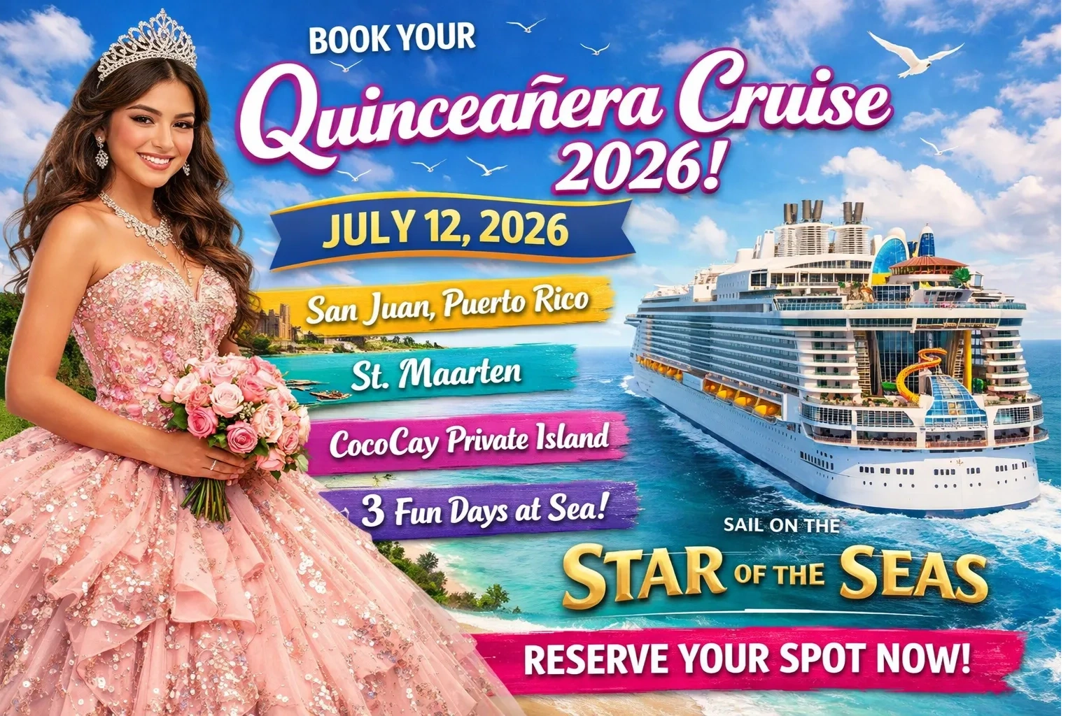 Get ready for the ultimate adventure! At our travel agency, we make your dream vacation a reality. From unforgettable Quinceañeras and Sweet 16s to birthdays, bachelorette parties, family trips, and group getaways—no group is too big or too small. Let’s make your celebration at sea one for the storybooks!